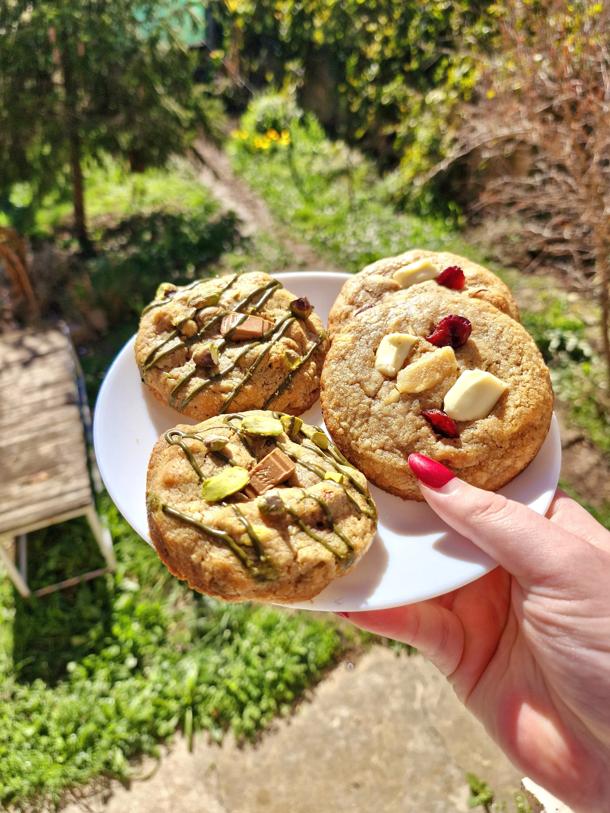 Découvrez notre assortiment de cookies, une sélection de saveurs pensées pour tous les gourmands. Chaque cookie est préparé à partir d'une pâte riche et fondante, pour un résultat à la fois moelleux au centre et croustillant sur les bords.